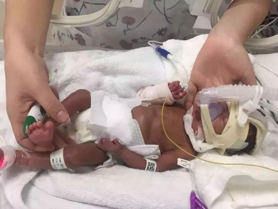 这篇新闻的主人公叫晗晗,出生时,她只有26周,也就是刚刚6个月。刚生下来只有1050g。
