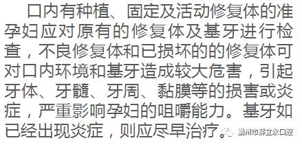 另外,患者牙周袋中细菌毒性增加,对牙周组织的破坏也加重。中、重度的牙周炎与早产和低体重儿的关系密切,因此备孕前应进行牙龈和牙周检查,菌斑牙石较多时可洁牙。