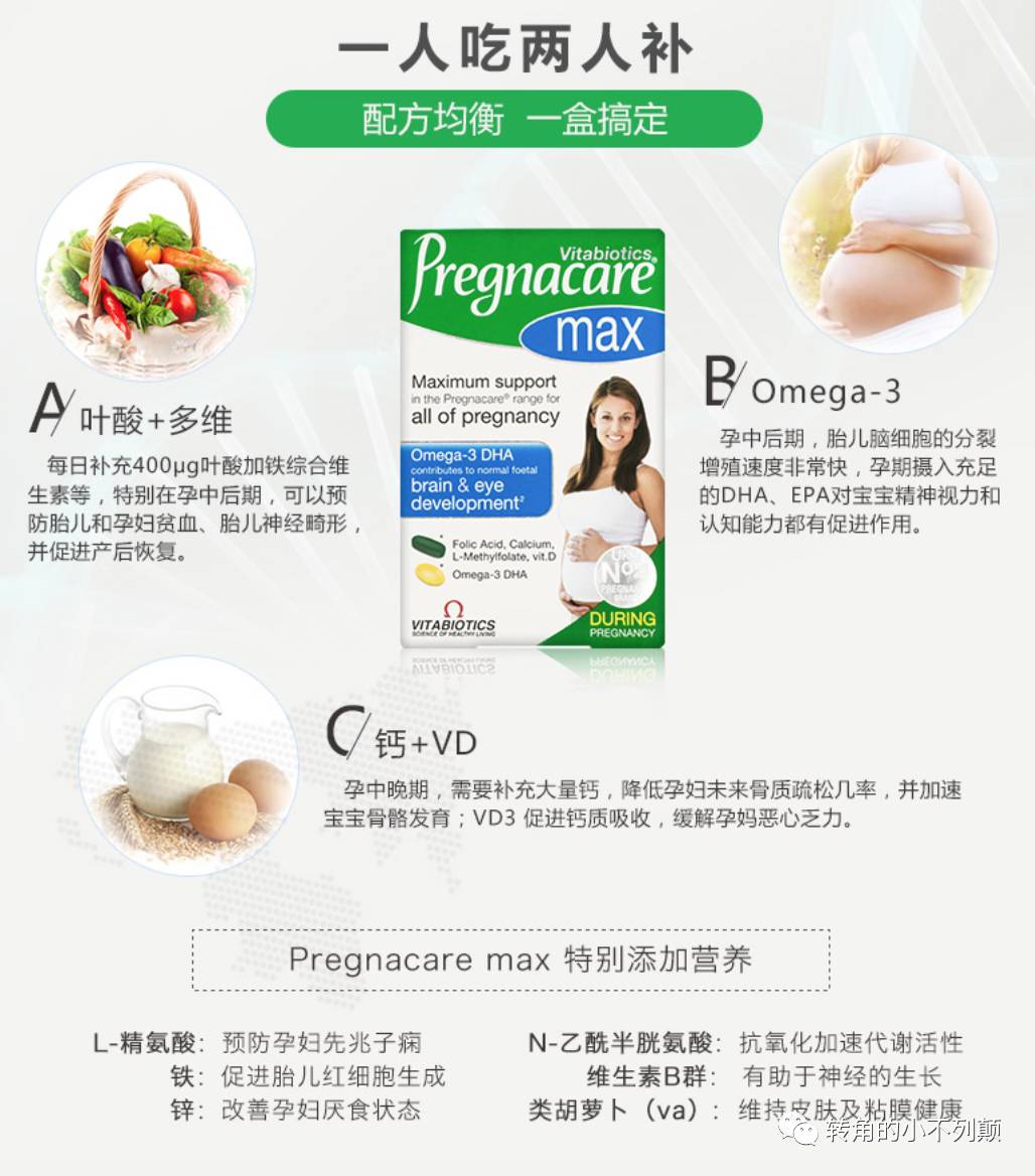 DHA和EPA是孕期胎儿大脑和神经系统及眼睛发育的重要保重,服用适当的Omega3可以促进胎儿的健康发育,但是不能使用普通鱼油(因为普通鱼油还有较高含量的维生素A,服用过多会对胎儿造成伤害)。维百莱这块复合维生素片,除28颗复合维生素外,还包含28颗孕期医用标准的挪威深海鱼油(不含维A),给孕妇提供全方位营养呵护,促进胎儿健康发育。服用方法:每天1粒维生素+1粒鱼油,随餐服用。两盒包邮,359元。