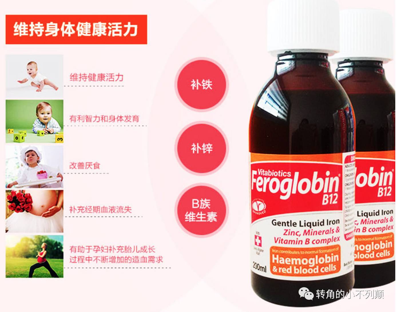 Feroglobin液体铁成分全部源自于天然水果、植物,无人工色素,有助于为孕妇补充胎儿所需的铁、锌以及维生素B,满足孕妇在孕期中不断增加的造血需求。亦有助于改善宝宝厌食的情况,维持健康活力,利于宝宝智力以及身体的发育。液体可以直接放在宝宝喜欢的果汁或者饮品当中,适合吞咽能力不强的人群。三盒包邮,339元。
