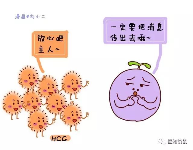 受精卵像发射塔一般,不断发射HCG,而HCG也是非常勇猛,它们勇闯天涯、不辱使命,进入了妈妈的血液,有些甚至来到了妈妈的尿液。