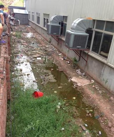 28日下午16时许,中新网记者来到事发地点——东阳市江北杨旭箱包厂的员工宿舍楼。记者在现场看到,该厂房的宿舍楼对面是另一家塑胶厂,一面3米左右的砖墙隔开了两个工厂。另外,塑胶厂前还有一条积水和满是垃圾的封闭小道。