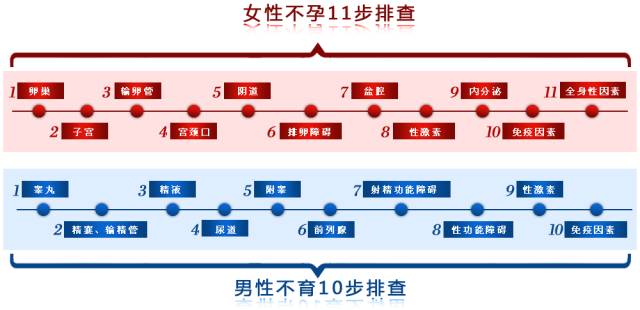 引起不孕不育的原因很多,男女双方归纳起来,有21个环节。不孕不育21步排查法是针对形成不孕不育病因层层排查的科学系统的检查方法,采取按先男后女逐步排除。对于久治不愈或病因不明的患者,可以很快找到问题及以往的治疗缺陷,从而制定有效的促孕方法。