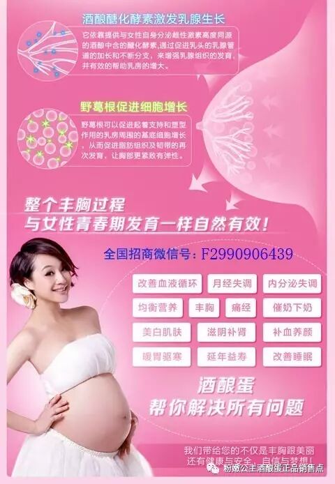 粉嫩公主酒酿蛋创始人刘燕:我们用了7年多时间专心研究粉嫩公主酒酿蛋,将我们中国传统秘方“药食同理”理论与现代乳房护理科学成果相结合,结合丰富的丰胸秘方经验更有针对性的加入了泰国野葛根提取物等高效成分,能加速胸部增大同时增强弹性,向上提拉胸部,令胸部坚挺、上翘的丰胸同时还美肤养颜哦 效果非常好。传统酒酿中含的醣化酵素和土鸡蛋含有丰富胶原蛋白来激发女性雌性症状况,从而促进乳腺及乳房周围细包的增长和再次发育,另一方面通过按摩疏通促进乳腺管道的生长加长和不断分支,来增强乳腺组织进行发育,真真正正的帮助乳房增大长大。