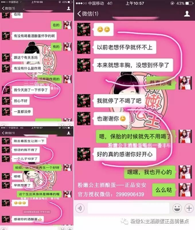 粉嫩公主酒酿蛋创始人刘燕:我自己从小到大就是喝酒酿蛋的,因为我的双腿行动也不方便,什么也做不了,感觉酒酿蛋很好喝,然后又可以催奶下奶,也是女人必备的营养品,自己做又很麻烦,所以我就自己研究怎么样可以更方便快捷的喝酒酿蛋。最初就让我自己身边的几个姐妹试着喝,大家同时都喝了三个月之后,再一起见面发现大家气色、月经各方面都变好了,还有就是胸部也有些变大了。当时我们都很惊喜,然后就想到周边会有很多人都需要这个产品。我就找专家了解和分析同时也了解到泰国野葛根对于女性胸部发育是很好效果的。后来就用了几年时间来研制怎么加入泰国野草根,还有就是找了2600名的志愿者里面有天生平胸的、有产后下垂缩水的,有正在备孕的、有各种不一样的小胸型一起喝酒了我研制的酒酿蛋三个月后,有98.58%的人胸部都长大了。所以我的信心就从这个时候开始,到现在为止大家喝了效果都很好。