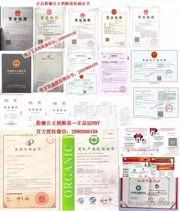 我们用了10天时间把粉嫩公主酒酿蛋公司的所有证书和所有资质查了一遍,发现正品的粉嫩公主酒酿蛋是有专利的,而且还有国家颁发“中国有机产品-有机产品认证证书”“中国知名品牌”“中国绿色健康食品”“中国自主创新品牌”“全国消费者满意企业”“营业执照”“食品生产食可证”“进出品贸易证书”除了在中国注册外,还有欧盟还有很多国家的注册。我们依据以上的证书一一去查验是否真实?粉嫩公主酒酿蛋创始人还是比较用心的,知道会有很多的造仿假货,为了保护自己经营的品牌和对消费者的保证,以免买到假货,所以都注册了,所以的证书在国家工商还有国家颁发权威证书的都可以查到。等会我们会做一下查询出来的结果图片放给大家看,可能有些放不完,如果想要了解更详细可以找粉嫩公主酒酿蛋安安正品V信:2990906439