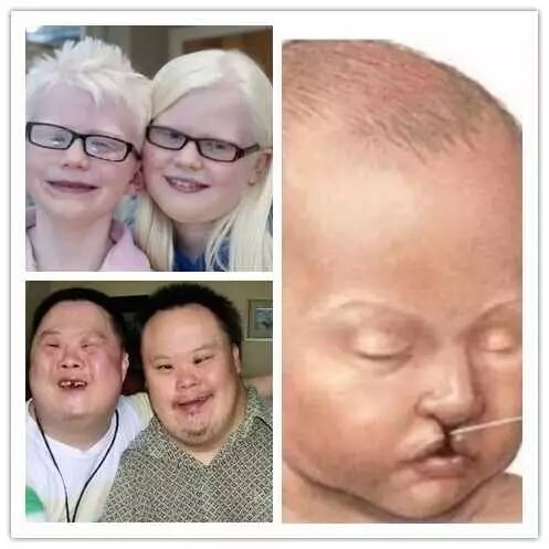 包括先天愚型、特纳氏综合征、克氏综合症、猫叫综合征、 两性畸形、唐氏综合症等。有致死、致愚、致残性。