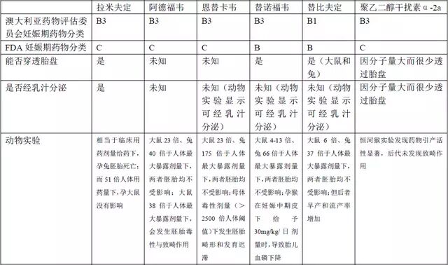 因为聚乙二醇干扰素孕妇禁用,而该药也是目前唯一通过有限期的维持治疗可获得持续病毒学应答的药物。没有聚乙二醇干扰素治疗禁忌症的患者可考虑使用,治疗期间应注意避孕。若必须使用核苷酸类似物类药物,推荐使用的最有效药物当属恩替卡韦和替诺福韦,基于现有安全性数据建议优先选择替诺福韦。