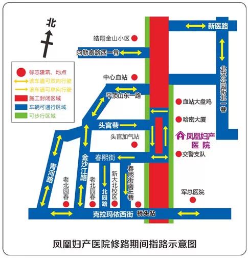 温馨提示:由于道路施工,到院就诊可能存在不便,在此对患者表示深切的歉意。(另附上更改后的路线示意图,协助您快速到院!)