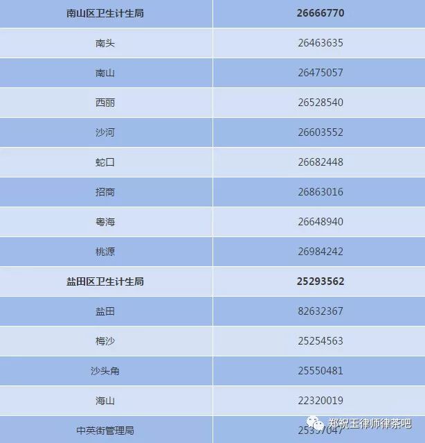 如果你对计生工作还有疑问,可以咨询所在地的计生行政部门,深圳市各区(新区)计生行政部门咨询电话: