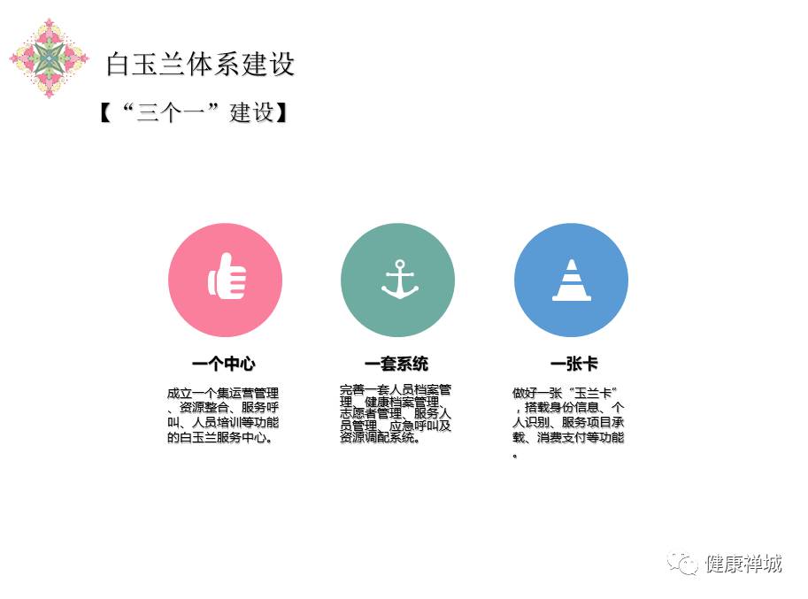 一套系统是指依托幸福家园养老系统、家庭智能消费系统,设计开发“白玉兰”服务定制服务版块,定制服务需求。一是实现服务对象、服务人员、志愿者、社区资源等运营管理;二是实现健康档案数据定期更新;三是增加“互联网+家庭医生”,配合智能终端检测仪器,做到“早发现、早预防、早治疗”,实现“小病不出门,大病有通道”。
