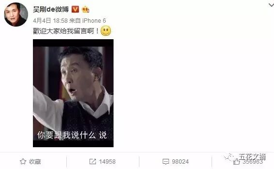 ▼4月4日,吴刚在微博上发了一句:欢迎大家给我留言啊!立马收到32万个赞!