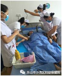 “喂,你好,我是沙湾区太平镇卫生院医生,我们医院有一个孕35周病人,阴道流血60分钟,出血量约300ML,情况较差,现正在转你院途中,请做好接诊工作!”2017年7月10日下午15:00时,沙湾区妇幼保健院突然接到急救电话,护士王华群立即将这一情况报告当班医生袁乔妍,沙湾区妇幼保健院产科急救应急预案随即启动。15:03分,产科急救专业组医务人员准备平车和急救设备在底楼大厅接诊;15:05分病人到达我院,迅速转至平车推至二楼彩超室检查;15:10分,护士组迅速安排床位、监测生命体征、做好术前准备、建立静脉双通道输液、术前备血2U,首诊医生问诊查体,二线医生与家属沟通交代病情,副院长王燕通知产急办成员做好应急抢救准备;15:25分,病人进入手术室手术……