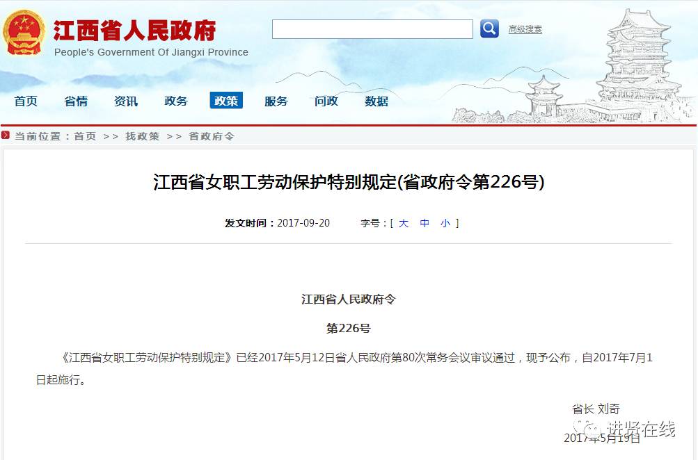 (二)符合《江西省人口与计划生育条例》规定生育的夫妻,除享受前项规定的假期外,增加产假六十天;