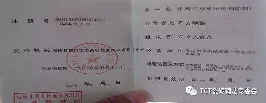 工商营业执照上是涂料厂,而包装袋上却是建材公司