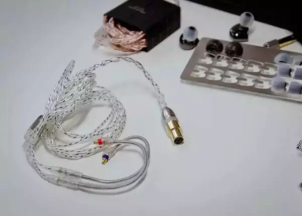 来看一下线材的特写,这是Ag4x银丝编织式平衡线材(4-pin Mini XLR),这根线材主要是用于连接DACAMP耳扩,啧啧,线芯是银制的,银的优点不必多说了,阻抗小,损耗低,耐伸拉……