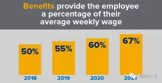 2018年,员工可以休假8周,休假期间可以获得平均周薪的50%;2019年,员工可以休假10周,休假期间可以获得平均周薪的55%;2020年,员工可以休假10周,休假期间可以获得平均周薪的60%;2021年,员工可以休假12周,休假期间可以获得平均周薪的67%。