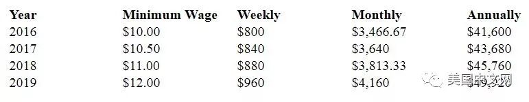 纽约最低工资逐年上调