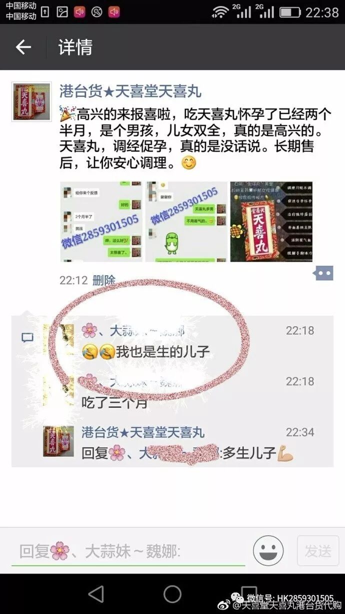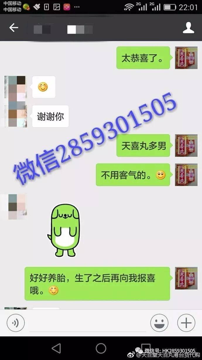 高兴的来报喜啦,吃天喜丸怀孕了已经两个半月,是个男孩,儿女双全,真的是高兴的。天喜丸,调经促孕,真的是没话说。长期售后,让你安心调理 ,有还更多调理多囊宫寒 乳腺增生纤维瘤丰胸特效中药微信2859301505