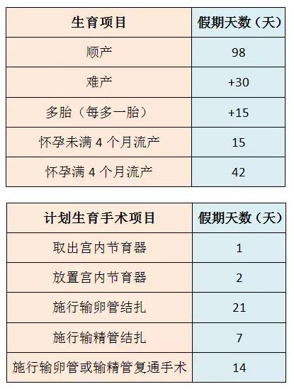 (生育保险参保职工享受津贴的生育假期天数一览表)