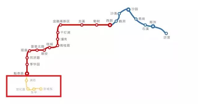 它北起广佛线一期魁奇路站,南至新城东站,分别为澜石站、世纪莲站、东平站和新城东站。