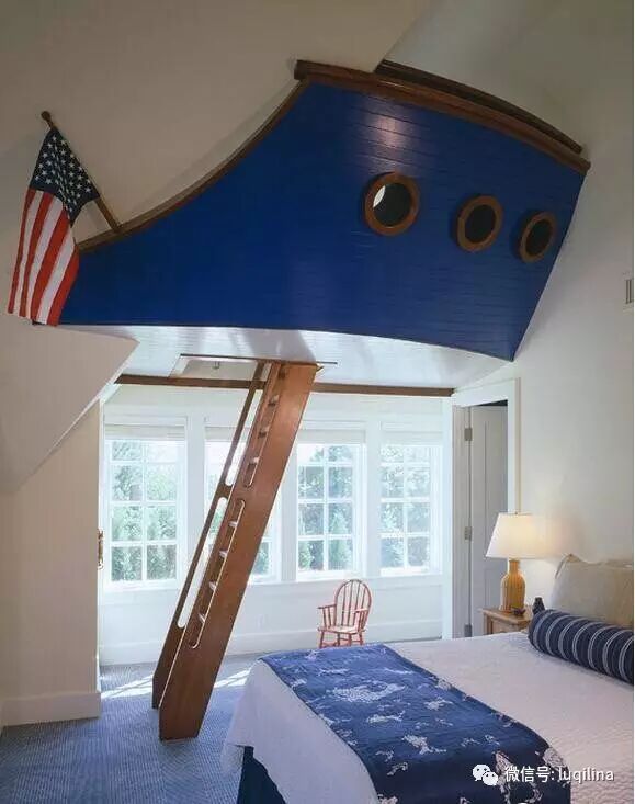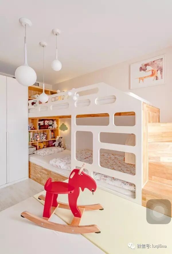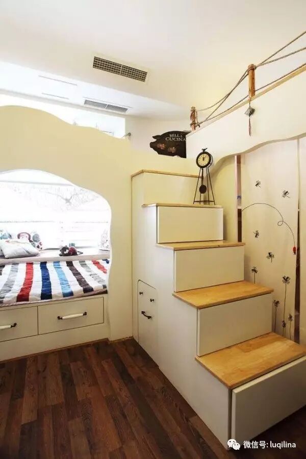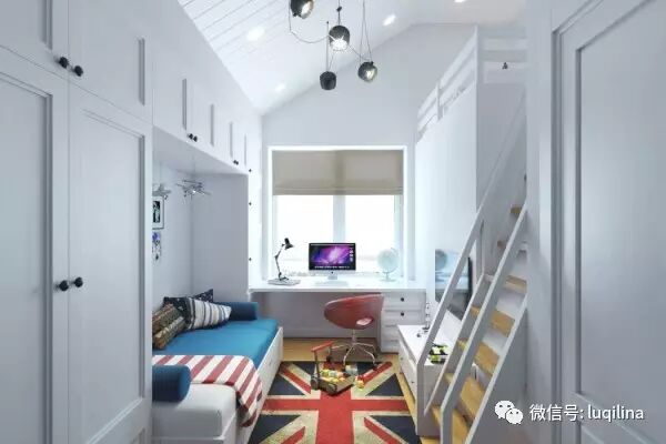 其实并不是四五米的层高才适合搭阁楼,正常房间也可以搭一个“迷你”阁楼,这样,空间更具趣味性,孩子们就会抢着去二楼睡觉,而不是总感觉委屈了睡在上铺的宝贝。
