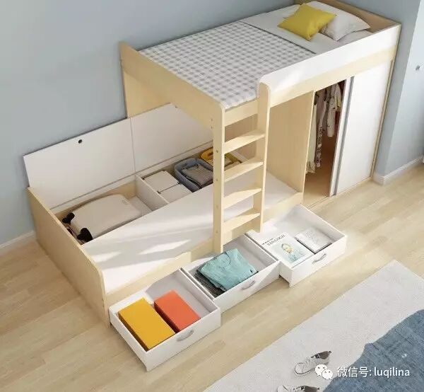 这个儿童房只有8平米,却实现了三张床、一个大衣柜、书架、玩耍活动空间,