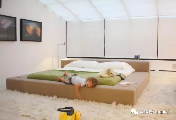 如果房子实在太小,以上说得都是浮云,不如索性打一个地台通铺,两个孩子睡觉、打闹、游戏都在这里,更加亲密无间。