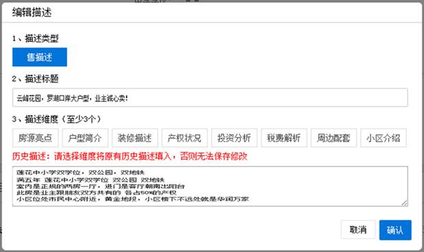 注意:旧版描述不会清除,但是编辑旧版描述时,必须按照新版描述规则选择维度,编辑后填入才可保存成功。