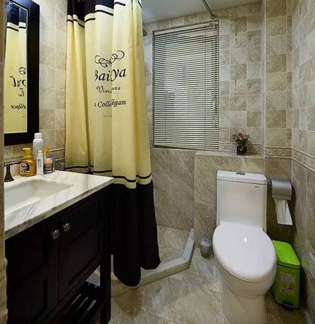 十、卫生间面积还是比较小的,做干湿分区有点紧凑,所以用了浴帘,这个空间也还是可以做淋浴房的,以后可以改。