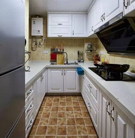 十一、厨房扩大之后,橱柜做成了 U 字形,这是本案“神来之笔”,拥有豪宅才有的岛式操作台,很是方便。喜欢的话,可以借鉴哦。