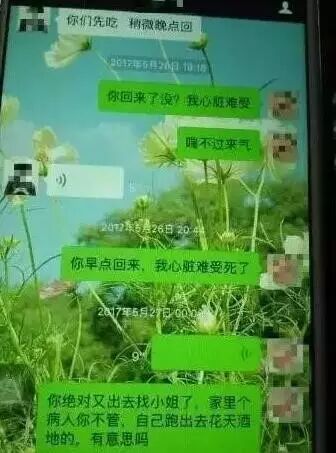 聊天截图里最后一句话是:“你绝对又出去找小姐了,家里个病人你不管,自己跑出去花天酒地,有意思吗”,这是她弥留之际对丈夫最后的控诉,想想那个夜晚是多么凄凉和无助,两个孩子失去了母亲,该是怎样的人间惨剧!随后,这位年轻妈妈的更多心声也被爆出: