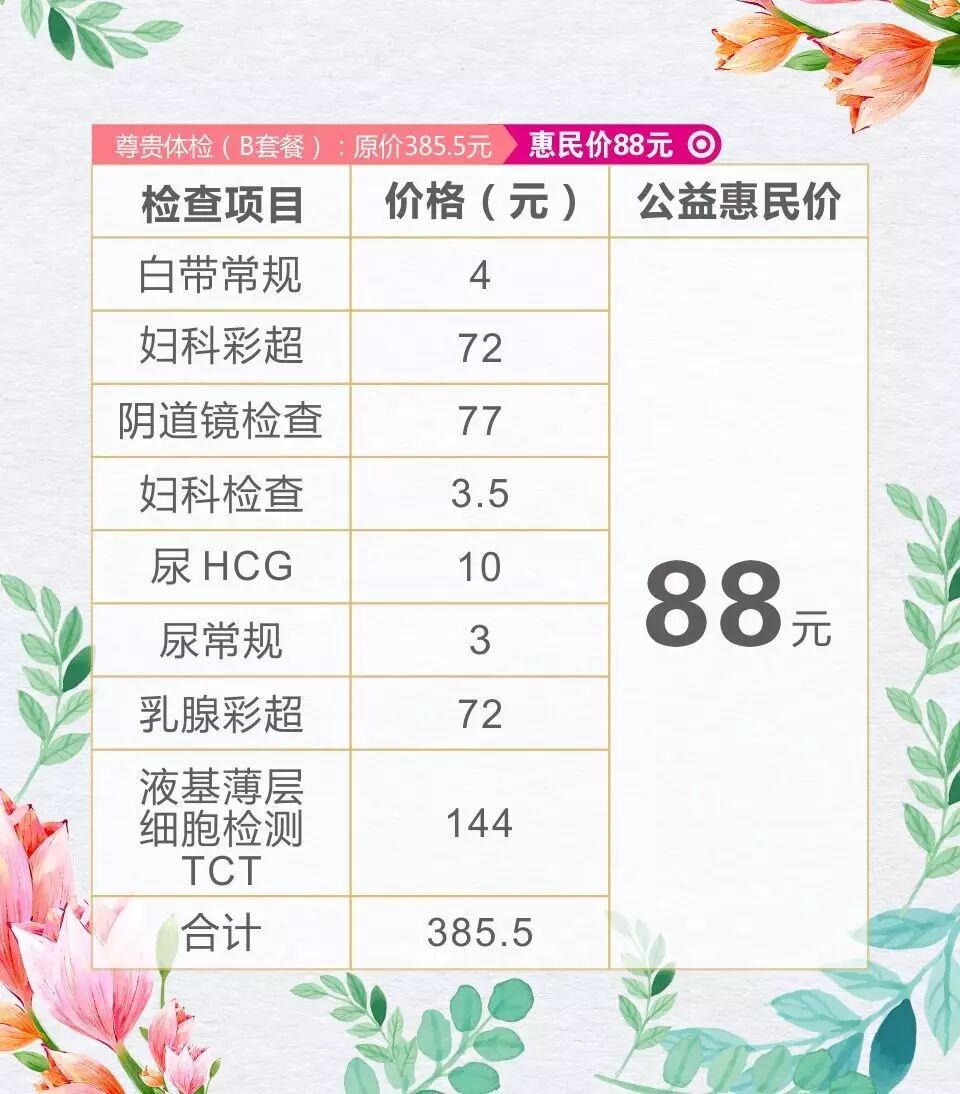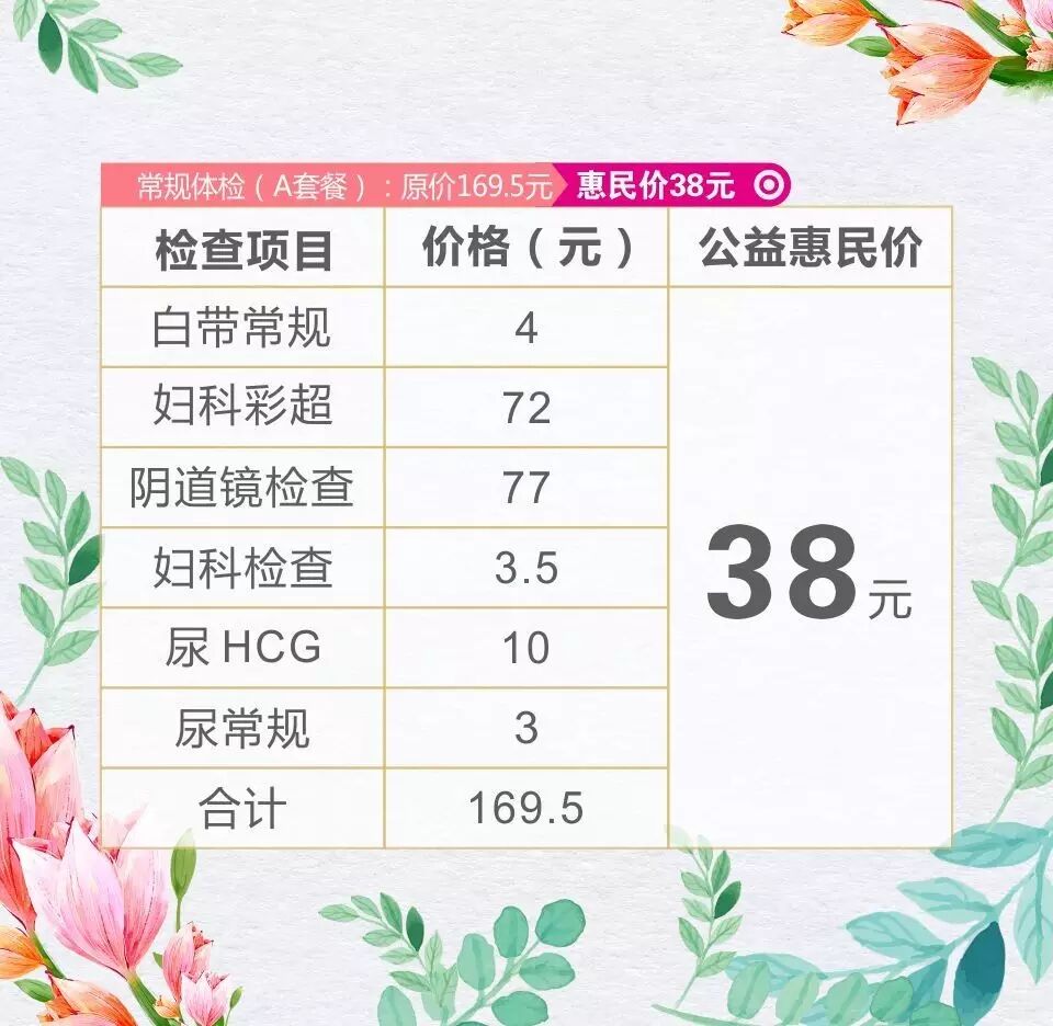 美丽健康行 38元全面体检