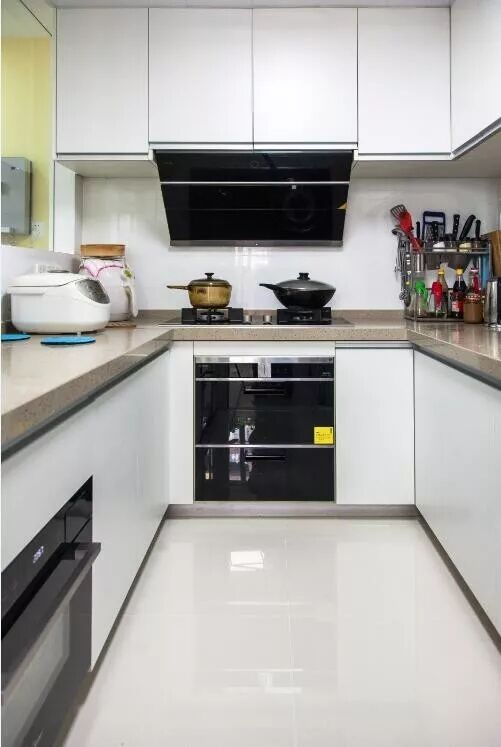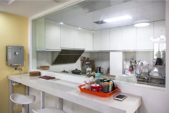 厨房装修一向是家庭装修中很重要的地方,当然也是家里争议比较多的地方,在我们家也不例外。老公一定做开放式厨房,但父母想要封闭式厨房,为了满足他们的愿望,设计了玻璃隔断,成了半敞开式的厨房。