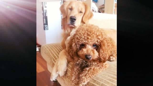 后来朋友发来照片,也说家里的泰迪和金毛相处非常好,形影不离地整天黏在一起。