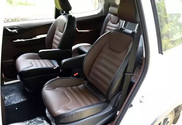 而东风风行SX6不仅仅安全配置更加齐全,也是7-10万元家用SUV区间唯一一款采用了2+2+3七座布局的车型,所以它的七座版本中间一排的乘坐感受,和前排非常接近,在支持座椅高低、前后(调节范围20cm)以及靠背角度的调节的同时,还带有独立的扶手和儿童安全座椅接口,加上柔软而宽大的皮质座椅及长轴距带来的出色腿部空间,可以任性的享受葛优躺又不影响旁边乘客的感受,而且这种布局,对于第三排乘客的出入也更加的方便,另外,第二排中间的通道加上后排出风口,在炎热的夏天能迅速让后排乘客凉快起来。