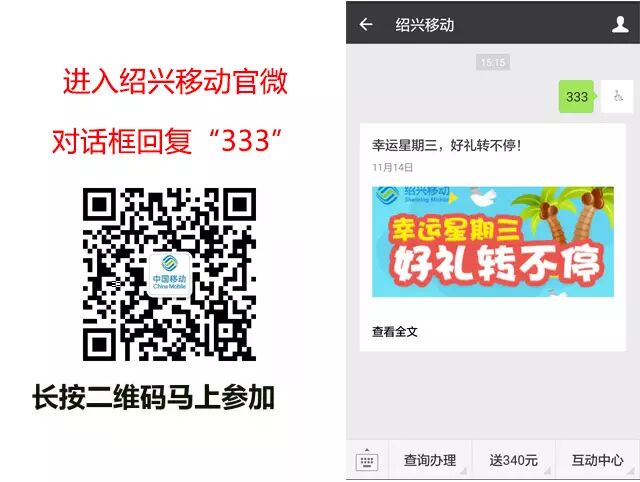 进入绍兴移动官方微信(长按识别二维码关注)—对话框回复“333”进入活动页面。