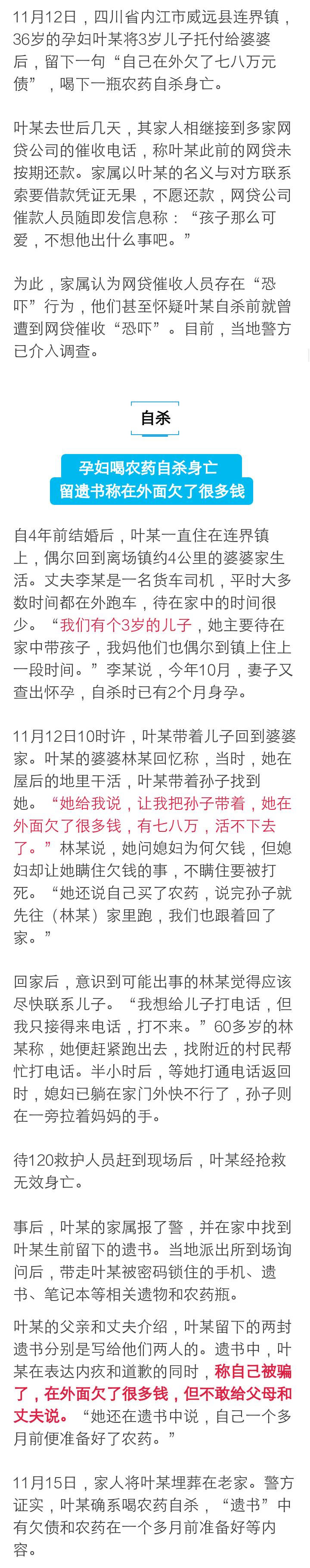 叶某为何自杀?家属怀疑,有可能是因为叶某遭遇网贷公司催收时,被对方催得太紧,甚至以家人尤其是儿子作威胁,存在“恐吓”行为。