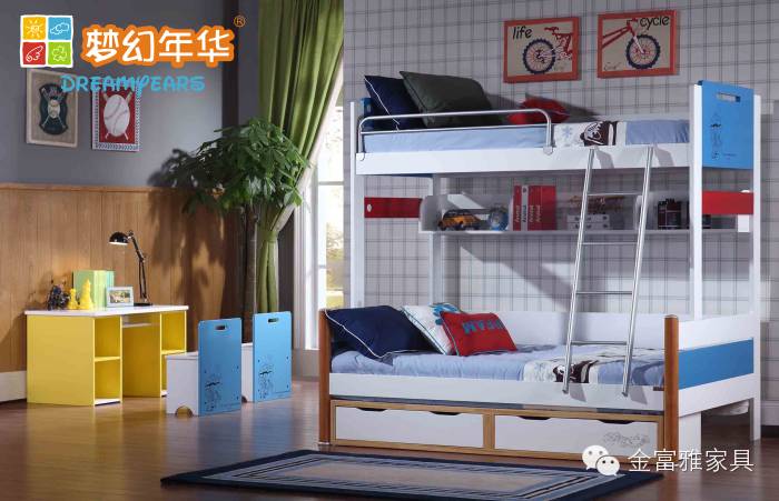 目前市场上最受家长欢迎的,仍然是上窄下宽的双层床,还有推拉式子母床、T字形和L形多功能的组合双层床。