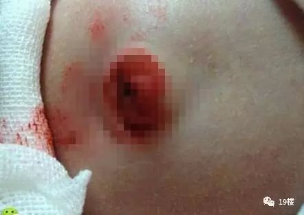 孩子的肚脐当场被剪掉了一块肉,鲜血直流!幸好经过医院的紧急处理,缝了几针后没什么大碍了。