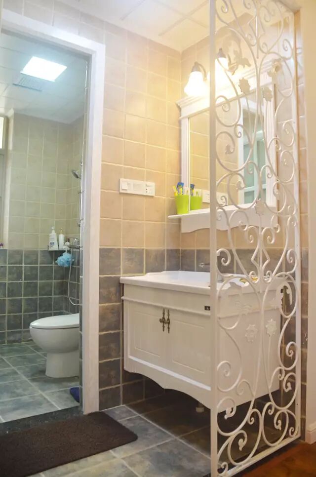 ▲ 公卫,铁艺屏风隔断隔开卫生间干区,有干湿隔离家里以后不再湿漉漉的。