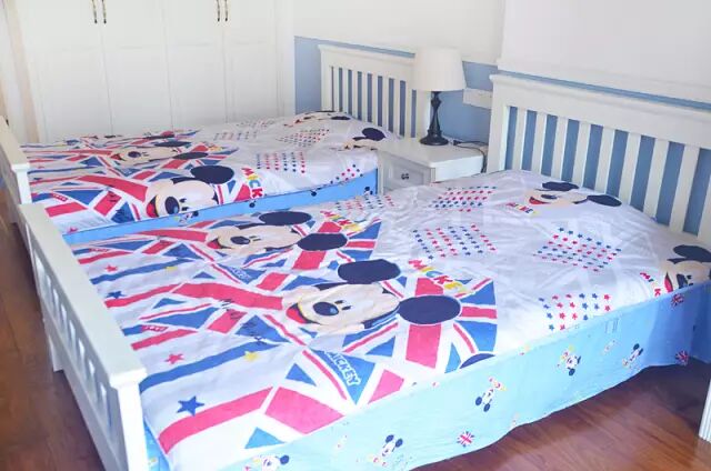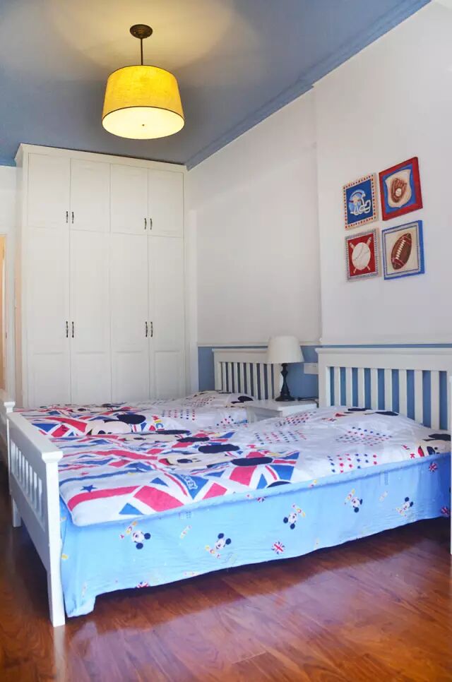 ▲ 另一边看去!小孩房间的墙壁是上下两色的,中间需要木线条隔开的,跟蜗居装饰汪总一说,汪总很爽快的说帮忙搞定。