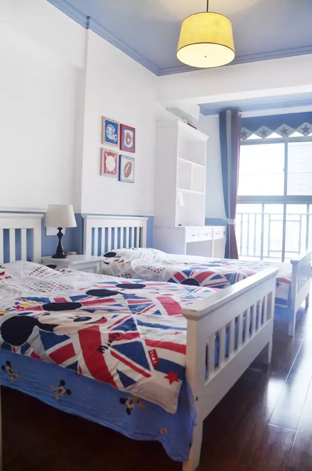 ▲ 儿童房扩至阳台,阳台部分做书房,两张1.2米床,兼顾书房+卧室+游乐园功能的儿童房。