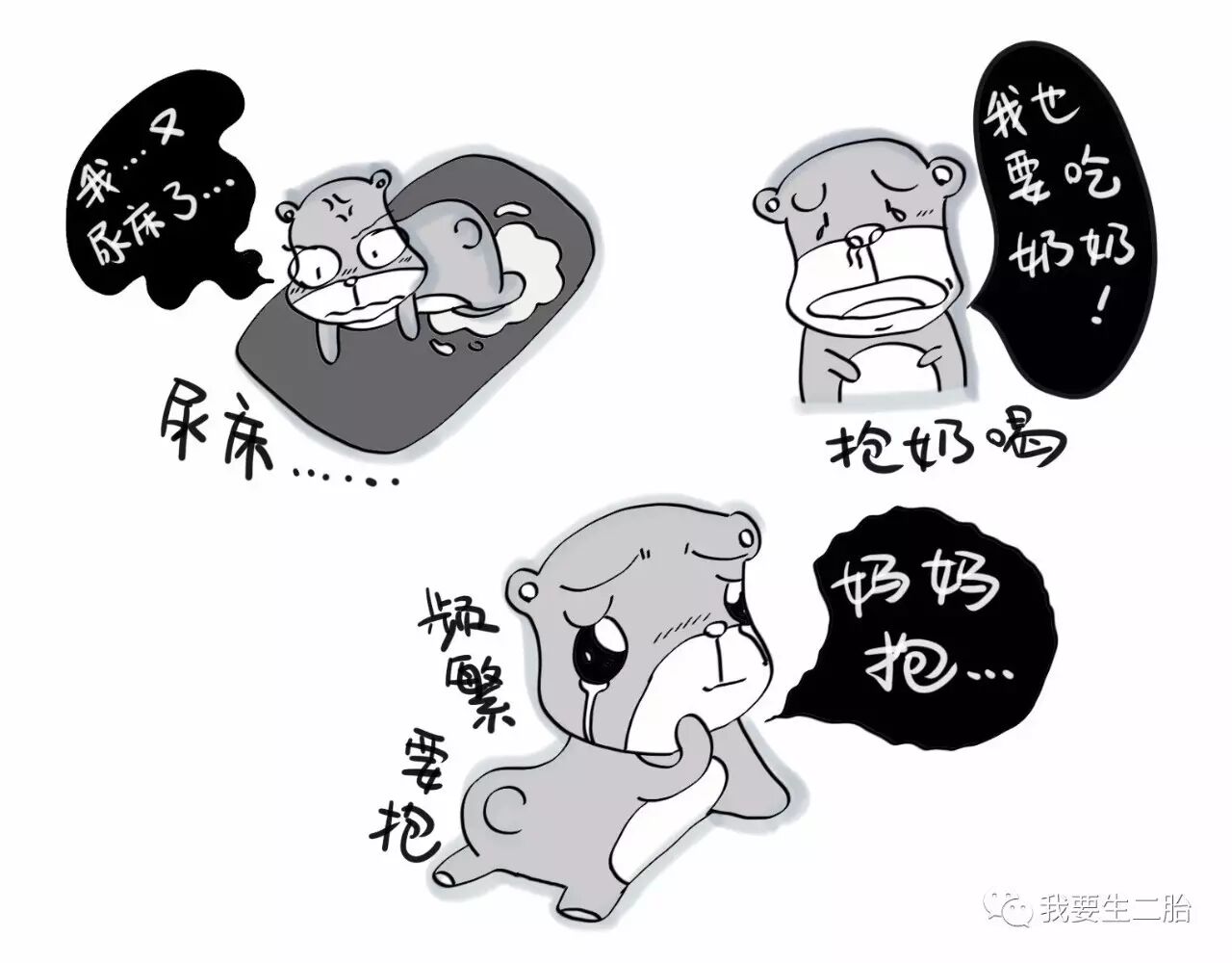 尿床、喝奶瓶、抢neinei喝,或者频繁地要抱,都是典型的“行为倒退”现象