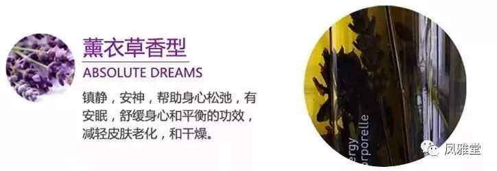 熏衣草精油:帮助身心松弛,具安眠、舒缓作用与平衡效果。减轻皮肤老化与干燥的现象。
