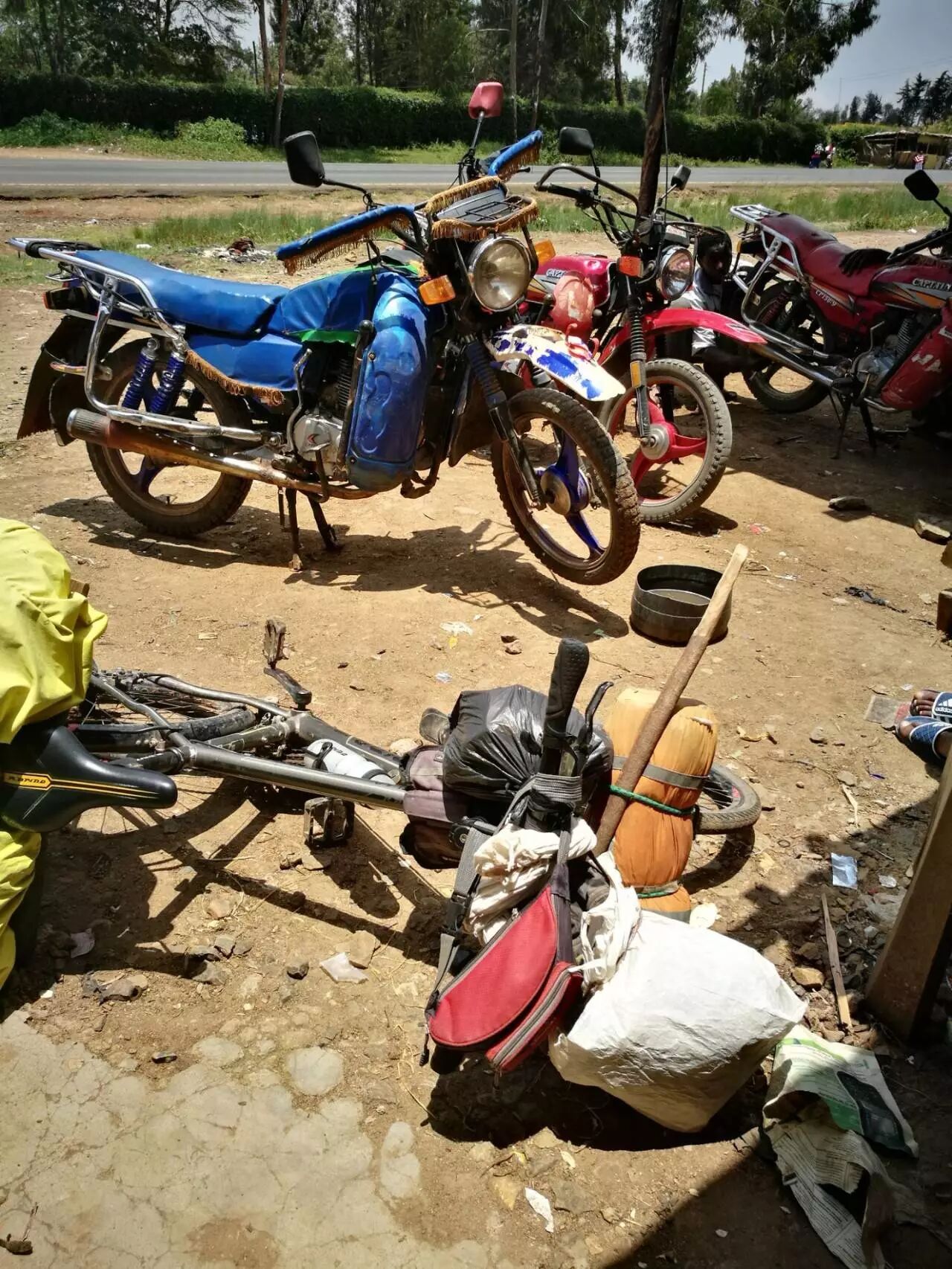 想想今年居然一下又骑了将近1万5千公里的样子了,这外胎薄得如我穿坏的前两双拖鞋,第一双穿得最久了,从伊朗到埃及阿斯旺才穿坏掉,第二双阿斯旺买的,骑到埃塞俄比亚就烂了。想想也可能是撒哈拉沙漠的高温,那拖鞋天天晒得我脚不舒服…所以骑长途,舍不得拖鞋骑远不了路啊!