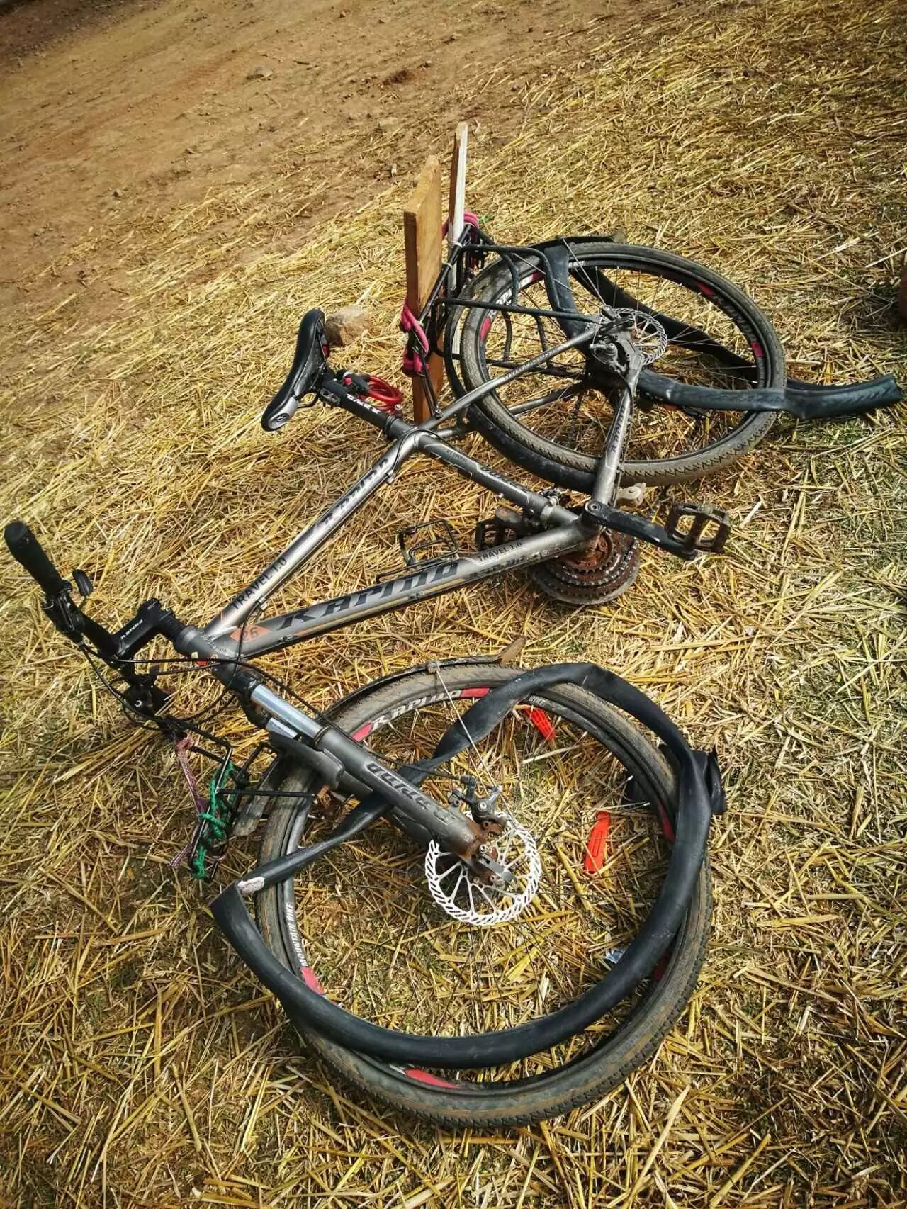 在4年前骑行新疆某一段大货车经常出没的地段,像去石河子还是回乌鲁木齐的路我给忘了,路上也是有一大堆货车废轮胎遗留下来的细铁丝,它们就像敌人埋下的地雷一样,分分钟就把我炸了。那时我还年轻气盛,补十几个小孔就气地踢自行车,一下就把我的无影脚练了出来。