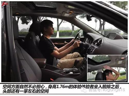 前排座椅宽大舒适,厚实的支撑感,配上旁边的折叠扶手,有种坐大沙发的感觉,这也是经典美系车一直营造的氛围,同时前排座椅还带有3档加热功能,验车必须试,这东西如果是坏的,造成损坏的原因包括:电路故障,按键失灵,进水,改装后遗症等等一系列问题。空间方面本来有思想准备,结果坐进去发现太大了!!借用网上图片,身高1.76m的体验者坐入前排之后,头部还有一个手掌左右的空间。