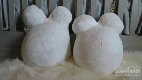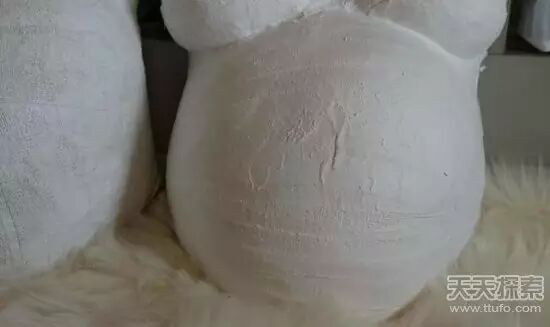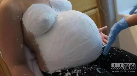 ▼此时的模型已经干透了,在模型师的帮助下,米丝缓缓取下成型的「孕肚」