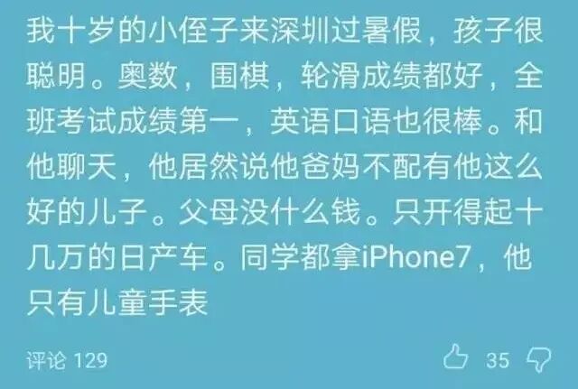 网友吐槽10岁的小侄子,他学习成绩非常优秀,奥数、围棋各种爱好出类拔萃,但吐槽爸妈也一针见血,说他爸妈没什么钱,不配有他这么好的儿子…